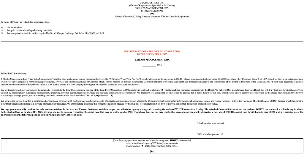 CEA Industries Inc. (NASDAQ: BNC), the company that only months ago was promoted as the largest